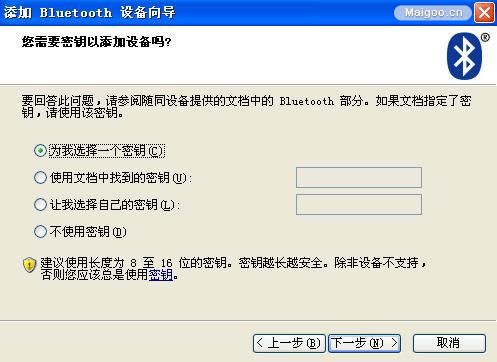 11、设置配对蓝牙密码,不设也可以,让系统自动产生密钥。