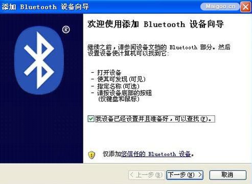 5、出来添加蓝牙设置向导窗口。