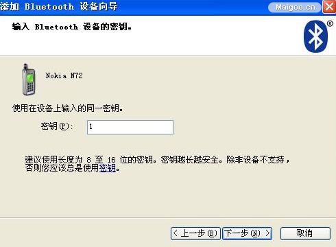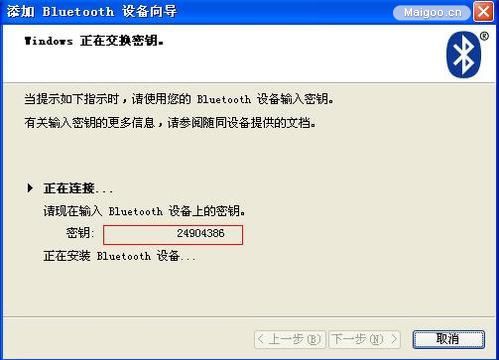 13、系统会自动产生密钥,把这串数字密码输入到手机里,就可以配对成功。