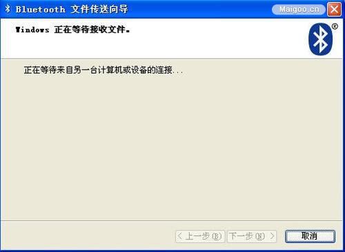 6、出来这个窗口,正在等待接收文件,说明电脑就绪,等待蓝牙发过来。