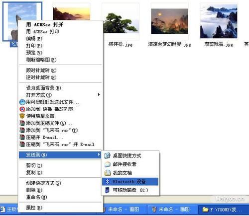 15、从电脑上发图片或数据到手机或其他蓝牙设备,选中您要发的文件点鼠标右键选发送到蓝牙设备