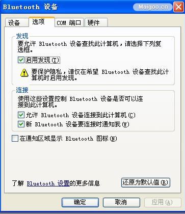 1、蓝牙插入USB口后自动在电脑右下角显示蓝牙图片,点鼠标右键选:显示Bluetooth设备,把启用发现勾打上,这样手机等设备可以找到电脑上这个蓝牙,否则无法搜到。