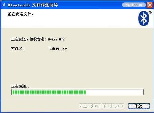 16、再选发送到的蓝牙设备,点下一步,就完成。