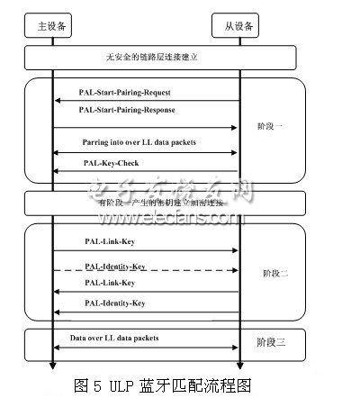 ULP蓝牙的匹配分三个阶段进行,其流程如图5所示。
