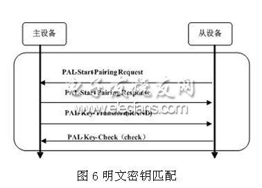1.解密区分标识符隐藏密钥:发送HCI_Set_key(0x00,DKH)命令到链路层,返回HCI_Command_Complete(),并再发送加密请求命令HCI_encrypt(adDMAster),PAL返回请求完成命令HCI_Command_Complete()。